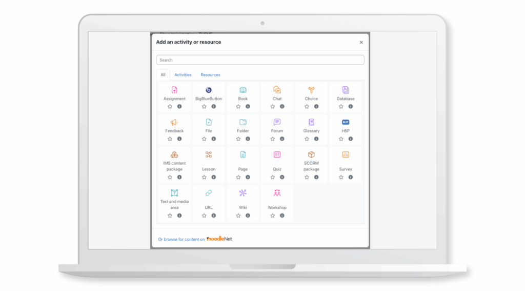 If you’ve ever built a Moodle course, you’ll know the Activity Chooser — that colourful list of tools you either know by heart… or scroll through wondering what they all do. In Moodle LMS 5.1, it’s had a well-deserved glow-up.