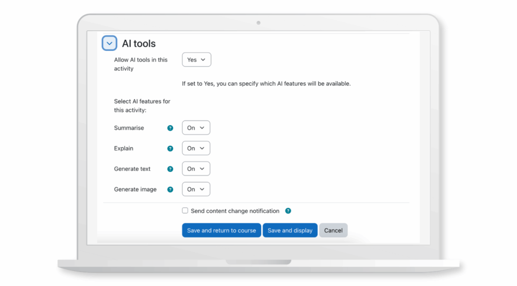 AI is everywhere right now — but in learning, it should always serve the educator’s intent. With Moodle LMS 5.1, teachers now have straightforward control over how AI is used in their courses. You can enable or disable AI features at the course level, and even fine-tune them for specific activities.